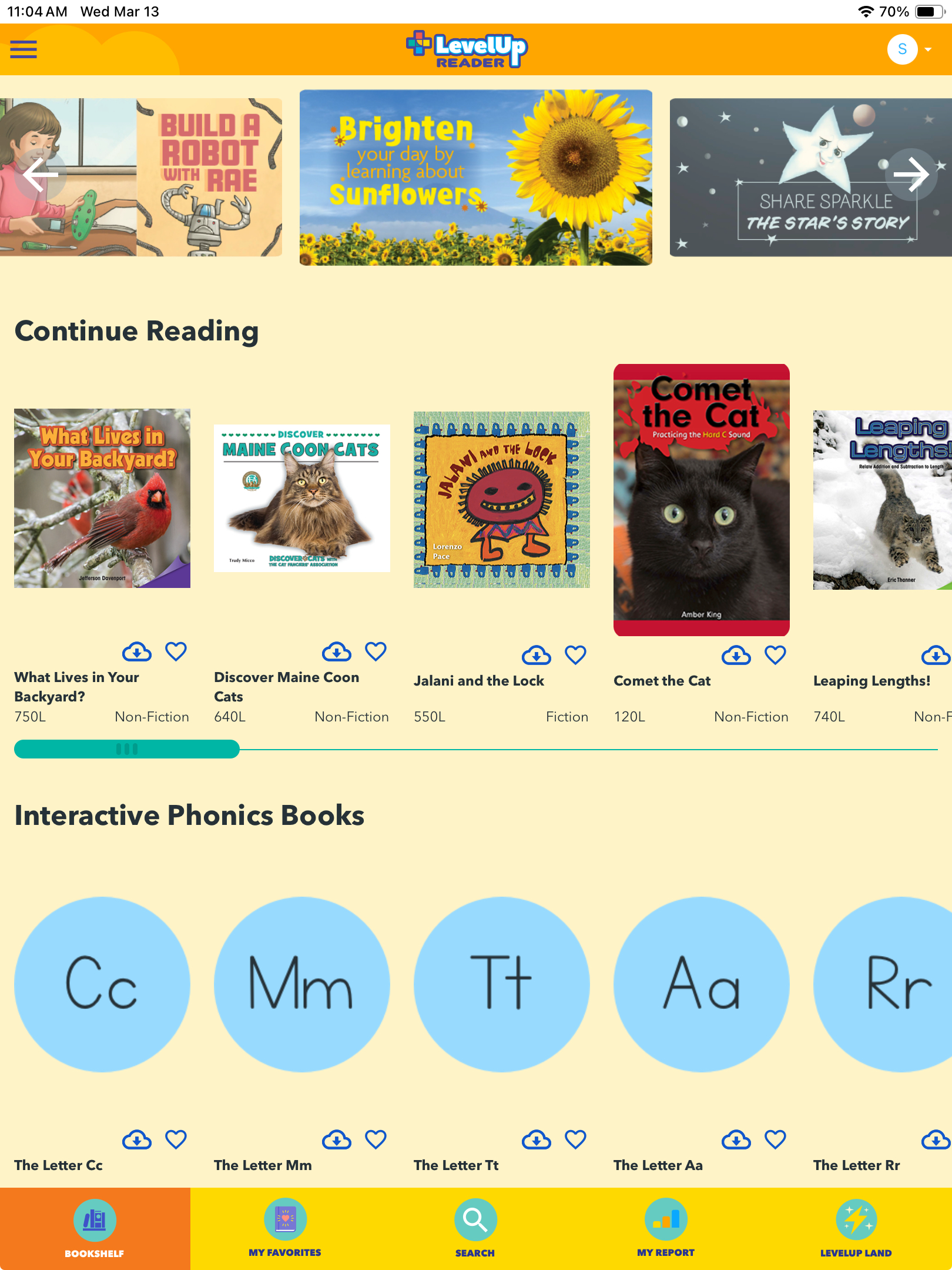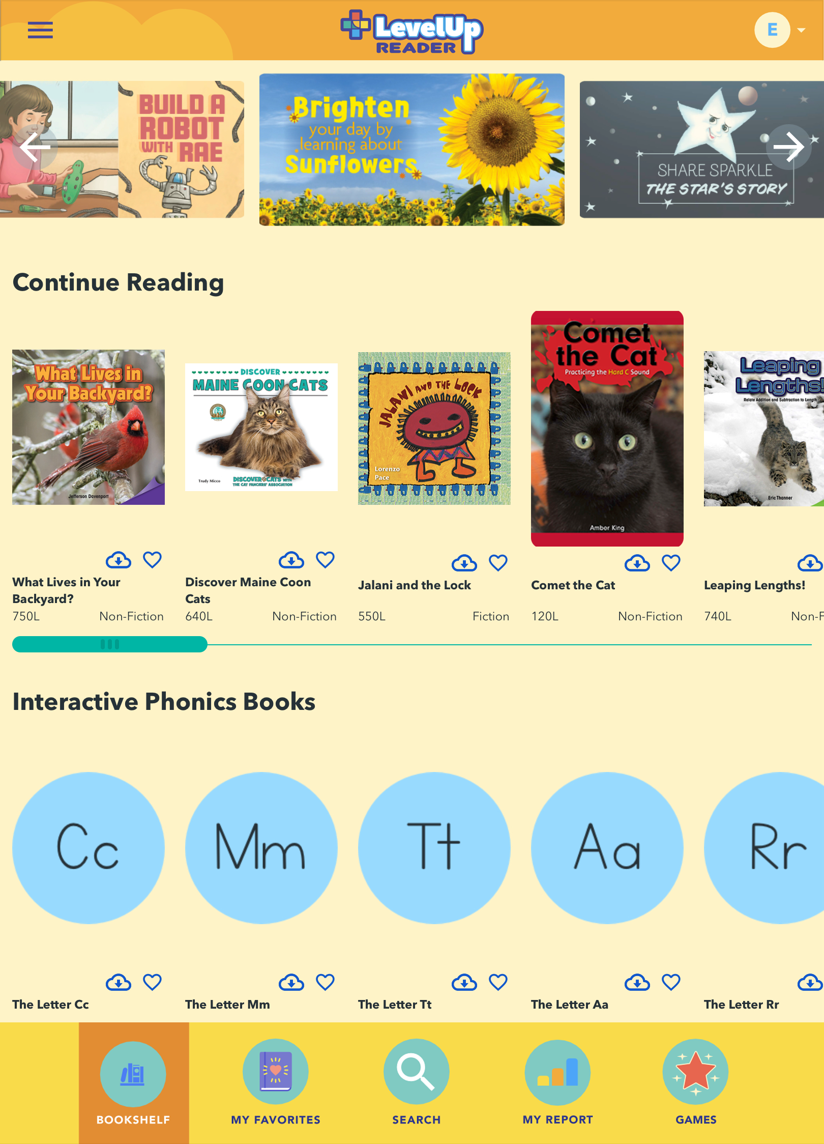 Your LevelUp Reader personalized bookshelf functions mostly the same in the app as it does in the web version, but there are a few differences in how it looks that you may notice right away: