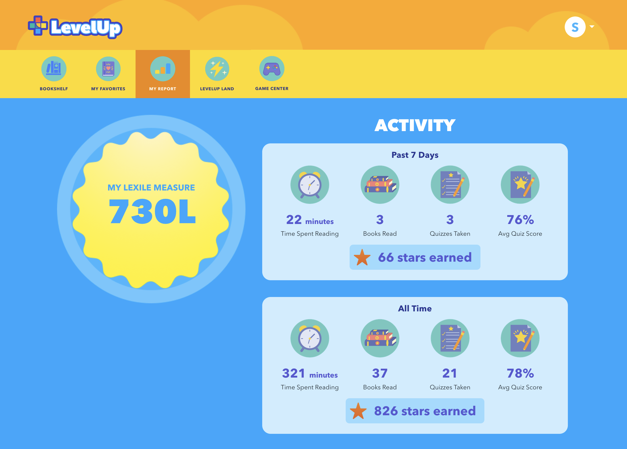 - The total number of LevelUp Land stars you’ve earned since you began using LevelUp Reader
